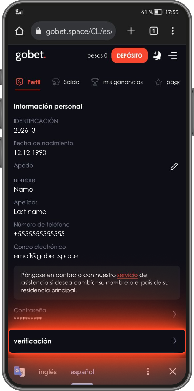 Acceda a su cuenta personal y vaya a la sección VERIFICACIÓN.